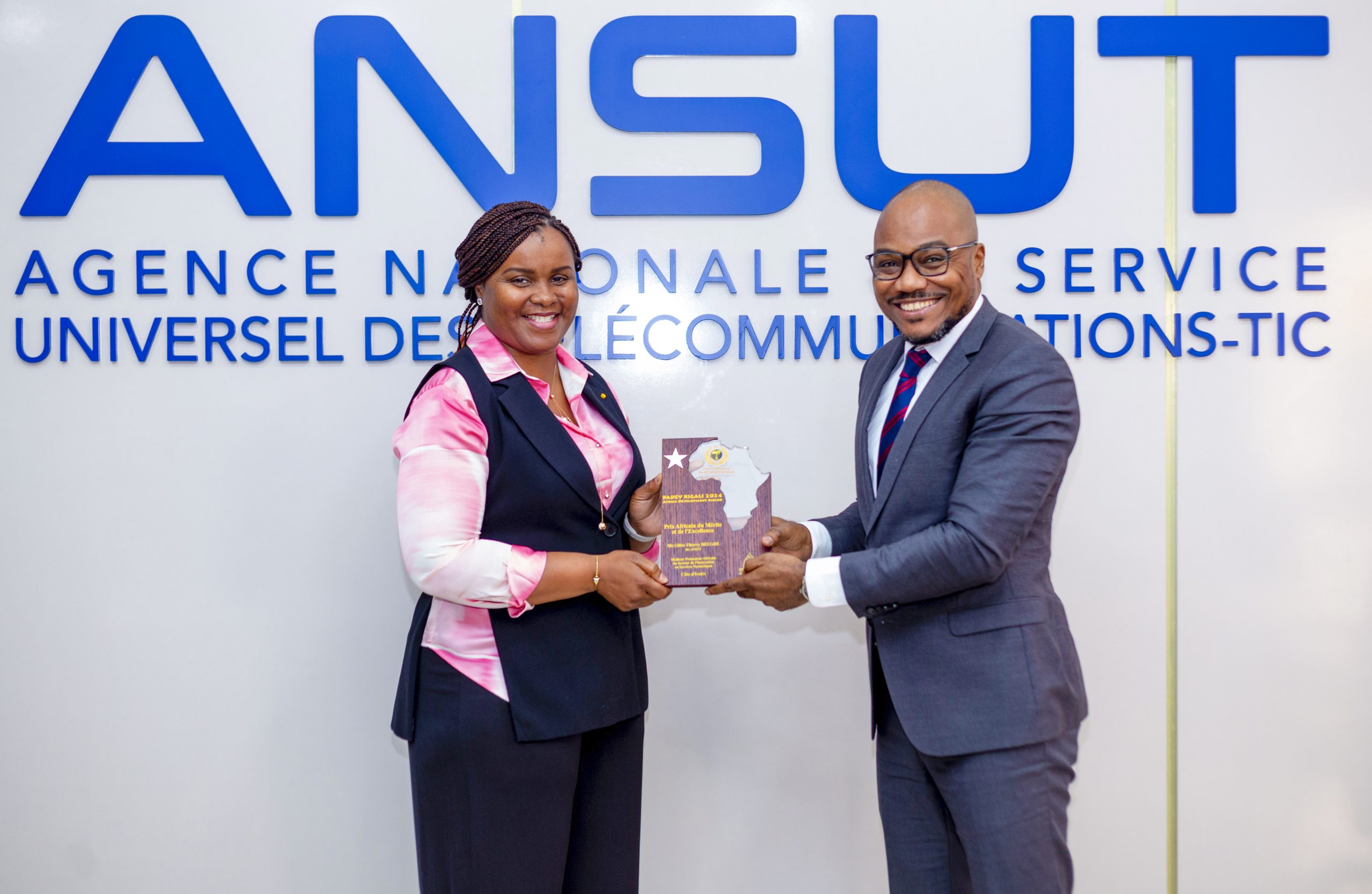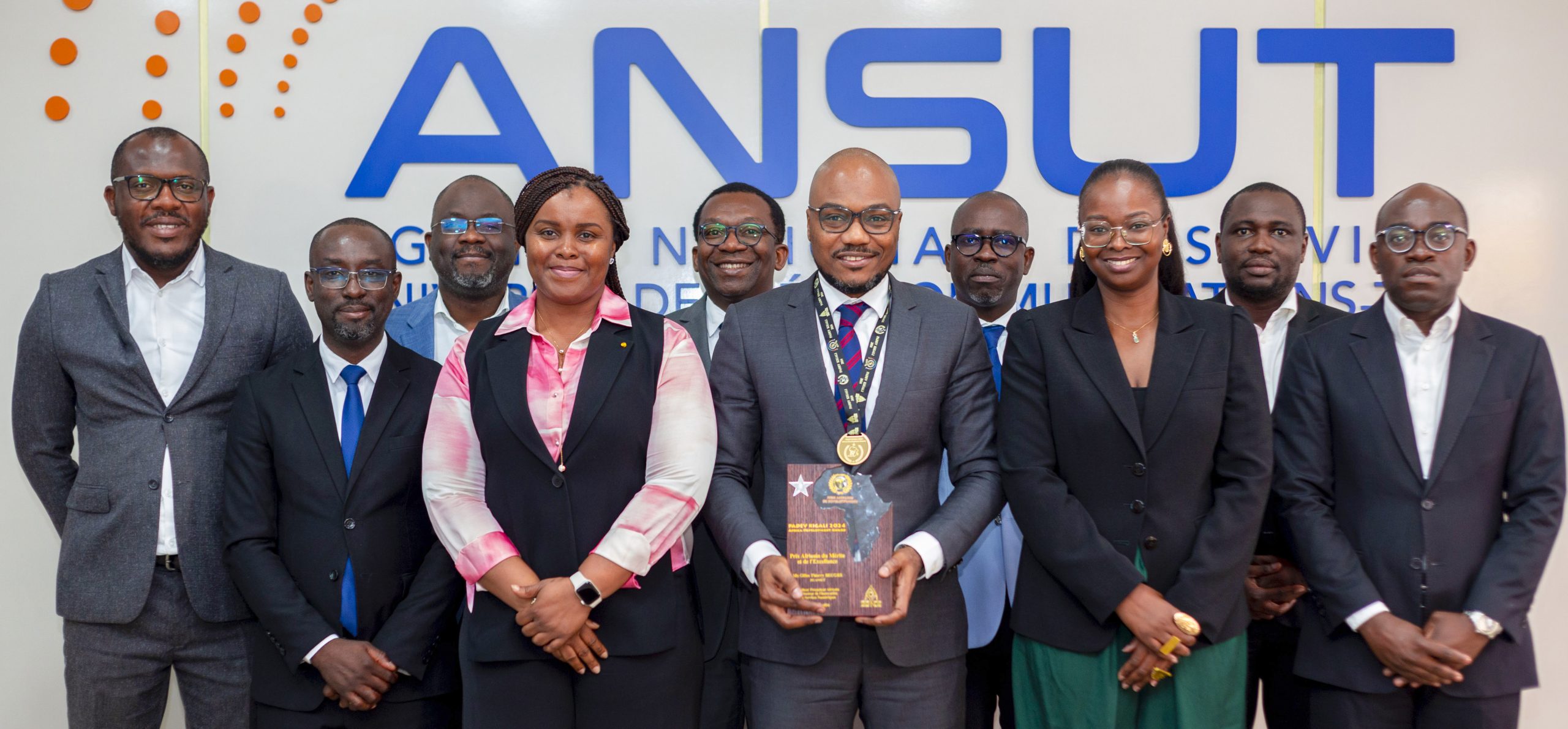 Le lundi 04 novembre 2024, M. Gilles Thierry BEUGRE Directeur Général de l’ANSUT, a passé un moment privilégié au siège de l’Agence avec les managers de son entreprise. Cette matinée a été pour lui l’occasion de leur présenter le trophée du « meilleur promoteur africain de l’innovation en services numériques » qu’il a remporté à Kigali au Rwanda, le 15 octobre 2024 lors de la 19ème édition du Prix Africain de Développement (PADEV).
